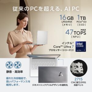 ASUS UX5406SA‑U7161WH は、最新CPU「Intel Core Ultra 7 256V」搭載(AI対応)